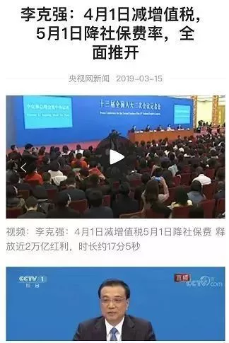 4月1日就要减增值税,5月1日就要降社保费率,全面推开。我看还没有其他办法比这种办法给企业带来的感受更公平、更有效。