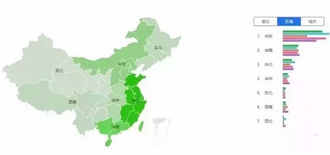 效益好的企业集中在浙江、江苏、广东、山东、上海地区,销售收入占全行业的76%,实现利润占全国的90%,市场和效益有区域分布集中化趋势。主要是珠三角和长三角。珠三角的广州,东莞,佛山。长三角的绍兴柯桥,苏州盛泽,常熟等都是中国纺织行业的积聚重镇。绍兴柯桥的中国轻纺城和广州的中大国际轻纺城是国内最大的纺织品贸易中心。但随着经济的发展,纺织工业慢慢在向内陆和东南亚迁移。