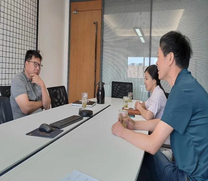 6月8日,协会会长、浙江银河印染有限公司董事长陈和军与秘书长刘建萍携秘书处工作人员走访了宁波森语国际贸易有限公司,与顾学锋总经理进行了深入交谈。详细了解了森语的发展运营情况,听取了需求和建议。