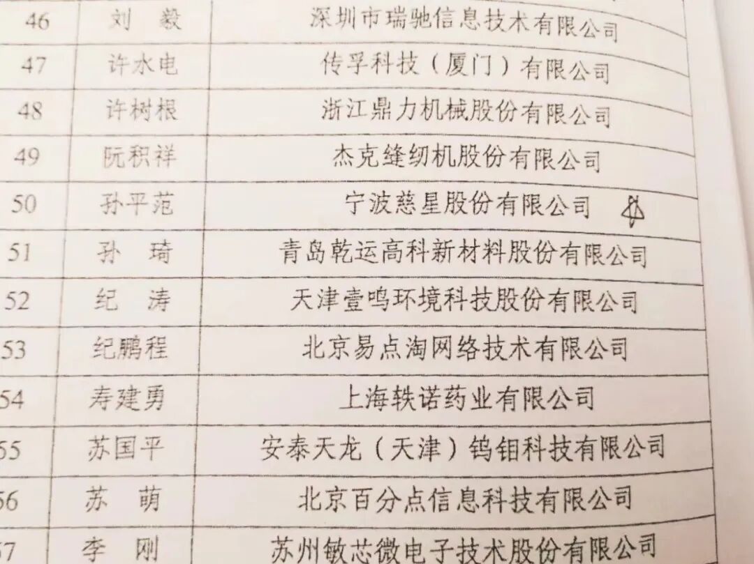 热烈祝贺慈星股份孙平范董事长同时入选科技部“国家万人”和浙江“省万人”领军人才计划!