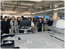 随后岑总和杨经理带大家参观了工厂制衣流水线,介绍了各流水线的分工情况和各个智能化设备并进行了沟通交流。重点对人员输入宁波的渠道方式进行深入探讨,建立长期稳定合作。