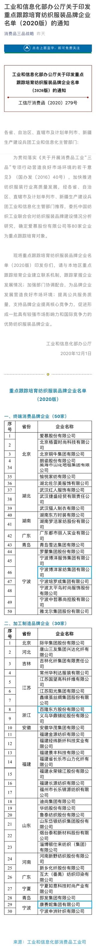 祝贺博洋家纺集团、康赛妮集团、百隆东方股份有限公司、进入国家工信部重点跟踪培育纺织服装品牌企业