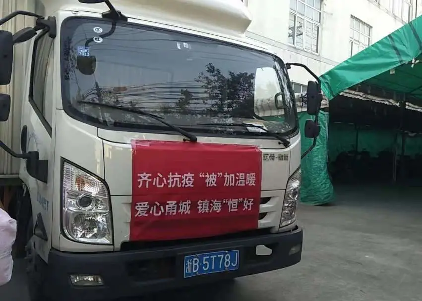 疫情面前有大义、有大爱、有温暖,疫情无情,人间有爱。隔离病毒,但不隔离爱;共抗疫情,让你我同心。500条恒源祥品牌捐赠的冬被于12月19日送达镇海,此次共完成 3700条冬被支援工作。我们有幸在党和政府高效有力、人性化保障的领导下,在市慈善总会迅速落地、大爱凝心的行动中,在抗疫战士们的无私奉献中,在广大企业人民群众的爱心和配合下,同心协力,送温暖,援抗疫,共盼早日取得这场疫情防控阻击战的胜利。