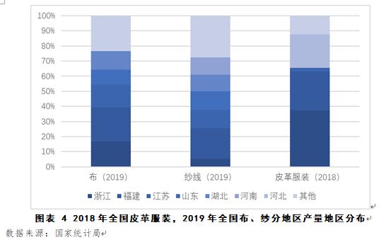 纺织服装产业集中地区与疫情严重地区重合。我国纺织服装行业区域化发展模式明显,主要集中在浙江、广东、江苏、山东、福建、湖北等地,这些地区也是疫情严重地区。纺织服装产业集中省份中,浙江、福建、江苏、山东规上企业复工率较高,广东、陕西、河南、河北规上企业复工率均不足50%。而规下企业复工情况中,最好的是四川,规下企业复工率达98%,江西为71%,其余各省市均未超过70%。