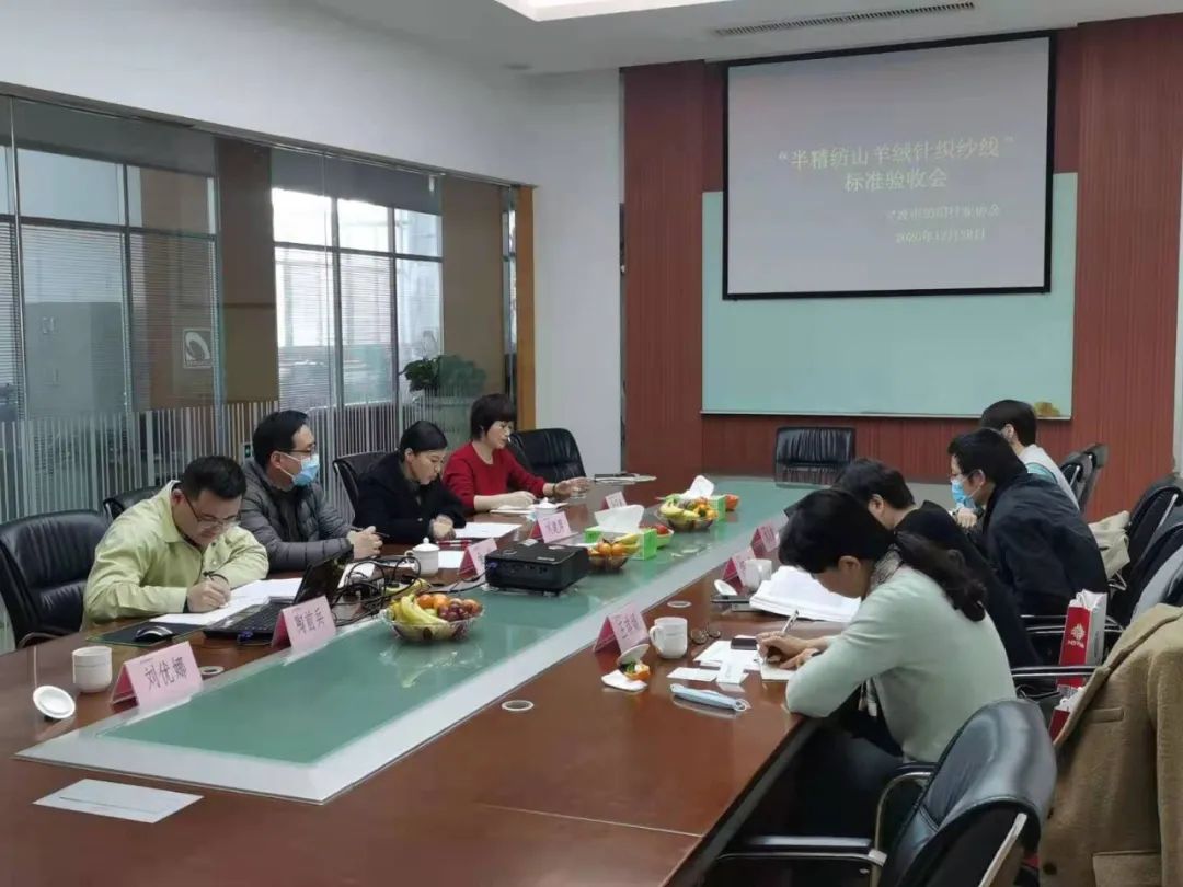 12月28日,宁波市标准化战略领导小组办公室对协会起草、推广、实施的《半精纺山羊绒针织纱线》团体标准项目进行了实地现场验收,并召开了专项验收会议。宁波市市场监管局标准化处王琪娟处长,该项目验收组组长宁波国浩标准质量管理研究中心宋洁蔚老师、海曙区市场监督管理局何莹科长、宁波侨泰兴纺织有限公司毛亚君老师一行赴宁波康赛妮纺织品有限公司、宁波中鑫毛纺集团等企业进行