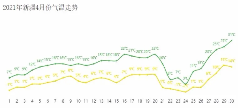 今年4月下旬,一场突如其来的大风沙尘和雨雪低温天气席卷了南北疆部分植棉地区,对已下播的棉种和发育出的棉苗产生了一些影响。这次灾害天气涉及的地区只包含了部分产棉区,并且这轮灾害天气持续时间较短,雪后天晴之后气温上升很快,减小了低温对棉种和棉苗的损伤。在部分受灾较重的地区,当地棉农积极重播补种,力争将损失降至最低程度。4至5月份是新疆恶劣天气频发的时期,每年都会或多或少造成棉花局部损失,一般不会对棉花生产大局产生多大的影响。