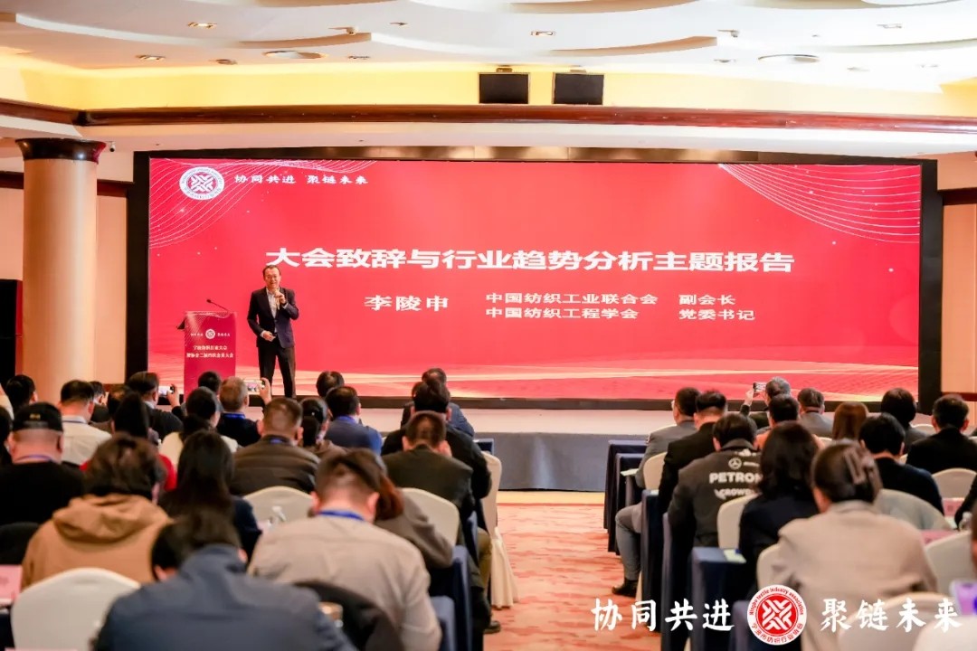 2025年12月19日,“协同共进 聚链未来”宁波纺织行业大会暨协会二届四次会员大会、七次理事会在宁波开元名都大酒店顺利召开。会议由宁波市纺织行业协会、宁波市纺织服装产业知识产权联盟主办,宁波市纺织行业品牌指导站、外贸预警点协办。中国纺织工业联合会副会长、中国纺织工程学会党委书记李陵申,宁波市市场监督管理局二级巡视员车宏斌、产品质量安全监管处主任邱振杰,宁波市商务局政策法规处副处长沈益本,宁波市经信局四级调研员刘青,宁波市环保局副队长吴方明,宁波市社会组织总会秘书长林冬以及协会负责人、会员代表、嘉宾们共226人出席本次会议。会议由协会副会长、浙江纺织服装职业技术学院纺织学院院长郑志荣主持。